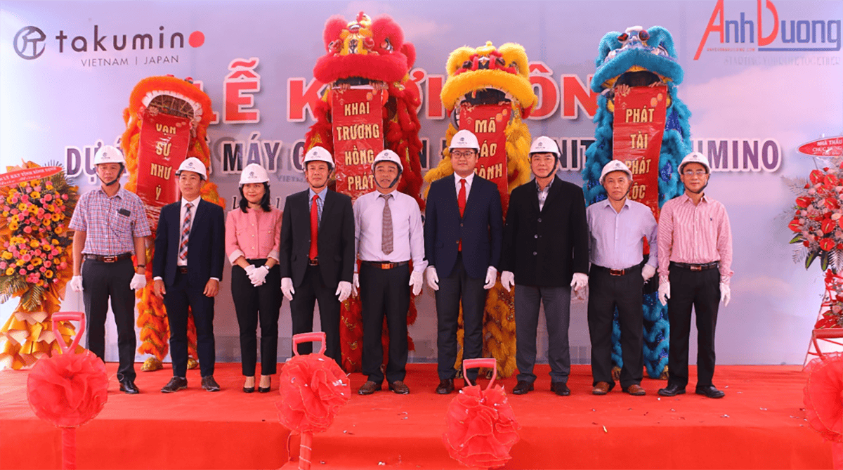 Tại buổi lễ khởi công còn có sự góp mặt của đại diện Công ty Cổ phần cơ khí xây dựng thương mại và dịch vụ Ánh Dương, là đơn vị tổng thầu công trình Nhà máy chế biến đá granite TAKUMINO.